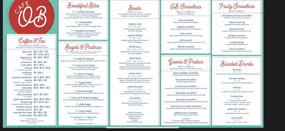 Cafe OB Menu